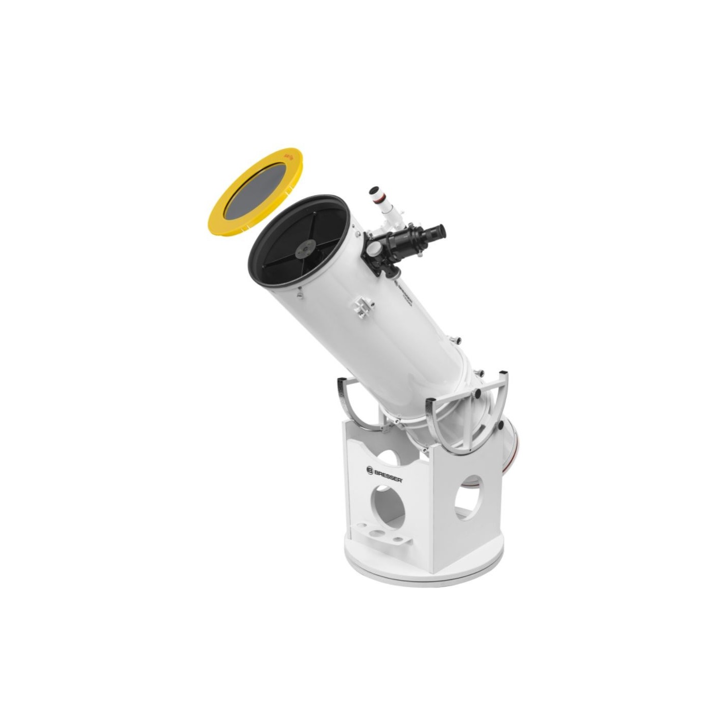 El BRESSER Messier 10" Dobson es algo muy especial. Ofrece una variedad de funciones y calidad a pesar de su bajo precio que a menudo no se encuentra en equipos significativamente más caros. Con la óptica de 254 mm de diámetro, la observación no se limita a la Luna y los planetas de nuestro sistema solar: se puede mirar profundamente en el universo y observar cúmulos globulares, nebulosas y galaxias. Se pueden ver detalles en la mayoría de los objetos del cielo profundo: los cúmulos globulares se resuelven en estrellas individuales y las nebulosas de gas, que solo se pueden adivinar con dispositivos más pequeños, muestran estructuras. El equipo es inigualablemente versátil: el excelente enfocador grande Hexafoc tiene una apertura de 65 mm, por lo que no hay sombra del tubo del enfocador incluso con oculares de gran campo. Las grandes ruedas de altitud también sostienen estos oculares sin problemas, y si se agrega mucho accesorio, como una configuración binocular, el tubo completo se puede mover en las anillas, y todo se vuelve a equilibrar en un instante. La incomparable rigidez del enfocador hace que el enfoque sea sencillo, por lo que la fotografía con este tubo no es un problema. Aquí se muestra otra fortaleza de este telescopio universal: quienes quieran hacer fotos pueden simplemente desmontar las ruedas de altitud del tubo y montarlo en una montura ecuatorial con una cola de milano: nada se interpone en el camino de la astrofotografía. Para las máximas exigencias, hay disponible una reducción de engranaje opcional de 10:1 para el enfocador. Si se considera que el enfocador es la parte del telescopio que se usa con más frecuencia, el uso del Hexafoc en este dispositivo es un salto cualitativo para esta categoría de precio.