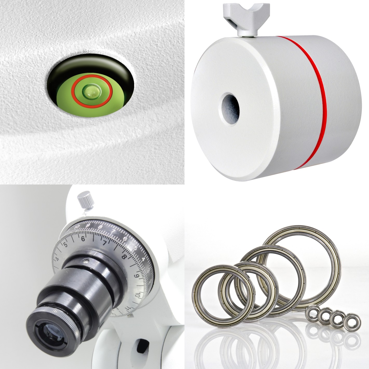 - Montura de precisión con rodamientos de bolas en todos los ejes
