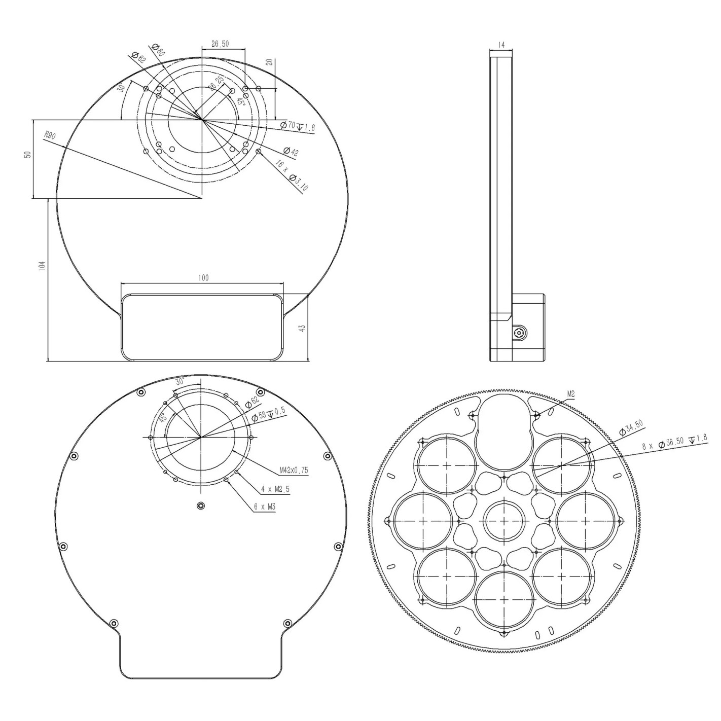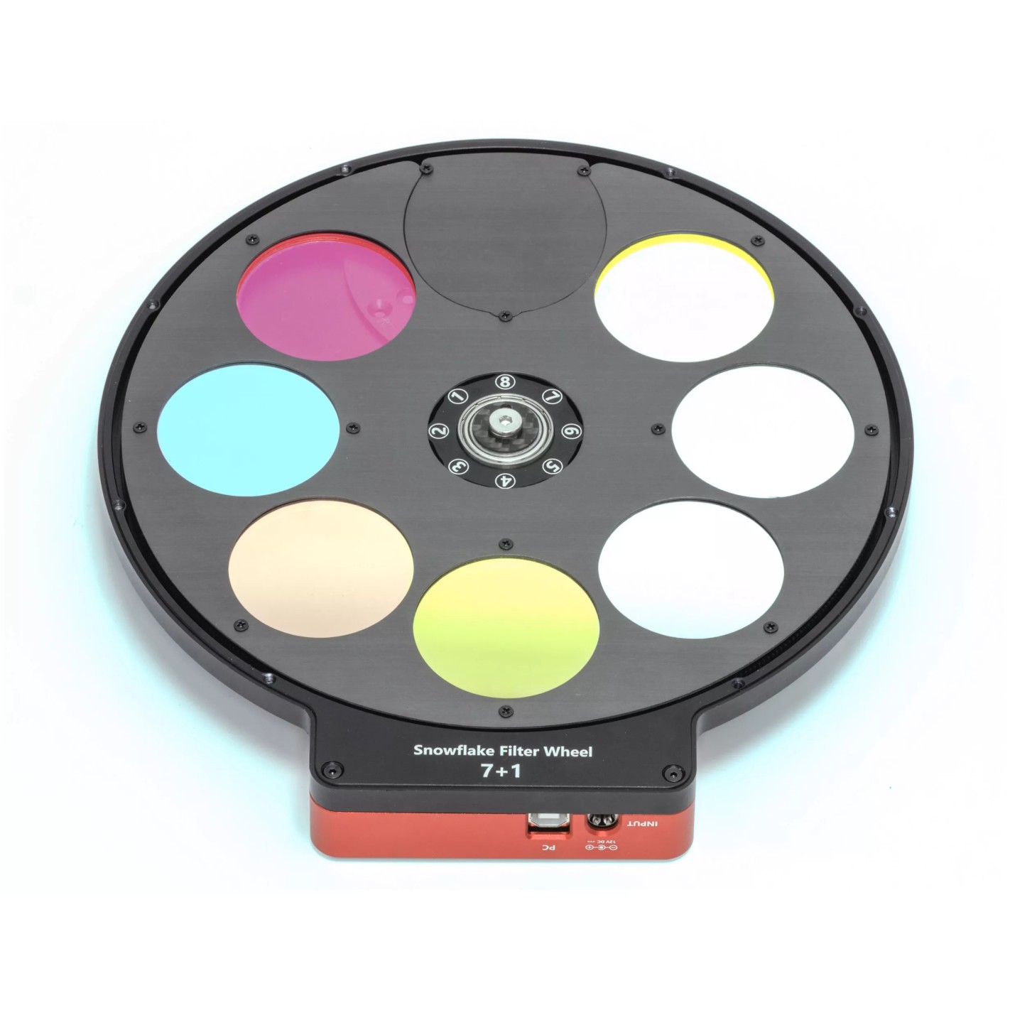 Rueda de filtros Snowflake SFW36S: 8 posiciones para filtros sin montar de Ø36 mm y solo 14 mm de grosor, low-profile.
