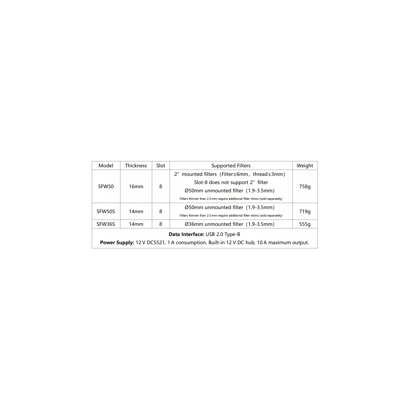 La Snowflake SFW36S es una rueda de filtros premium de 8 posiciones , diseñada para profesionales de la astrofotografía que requieren máxima precisión, rigidez mecánica y un diseño compacto. Compatible con filtros sin montura de 36 mm (de 1,9 a 3,5 mm de grosor), este modelo es ideal para configuraciones de imagen con limitaciones de backfocus.