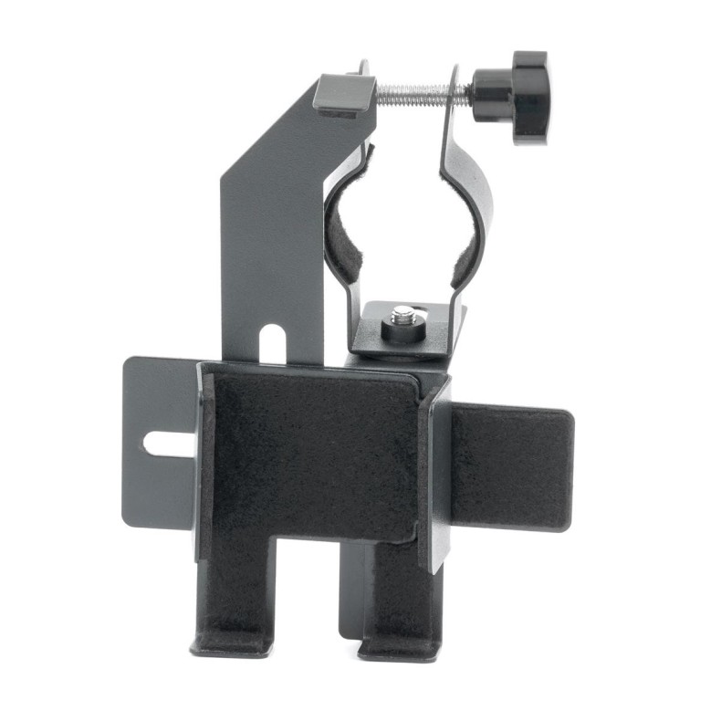 Gracias a una abrazadera, puedes bloquear el adaptador según el grosor del ocular. Un tornillo bajo la plataforma que alberga el teléfono permite bloquear las 2 piezas de ajuste horizontales y verticales, según las dimensiones que tiene tu versión de móvil.