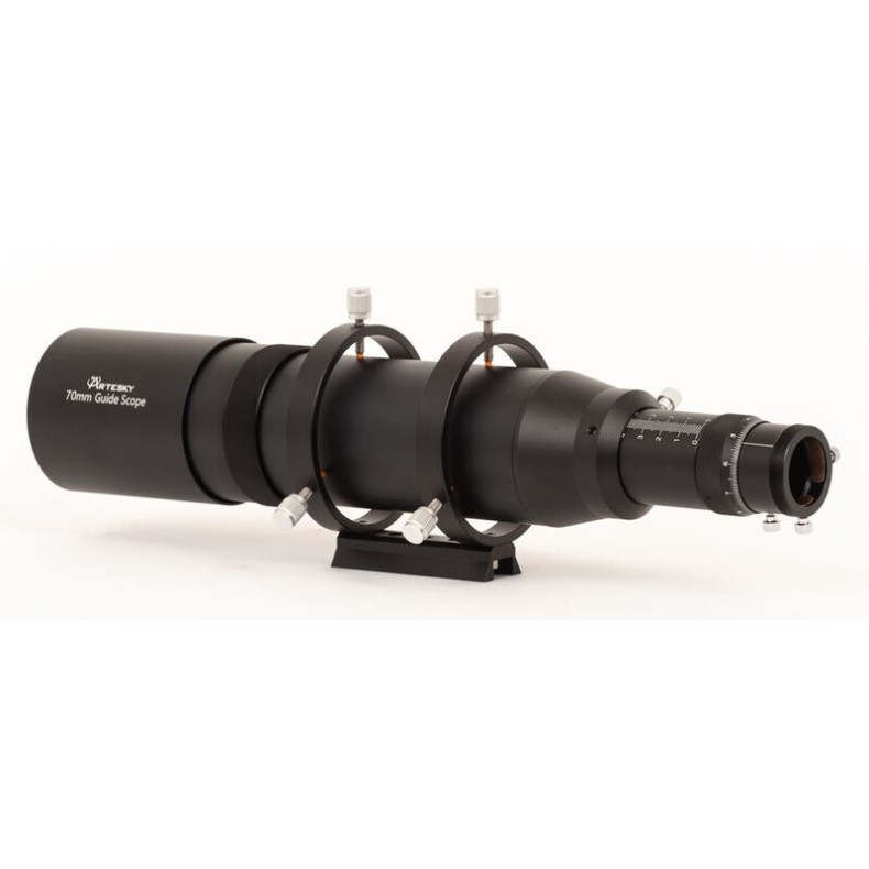 El visor guía está equipado con abrazaderas para telescopios guía con puntas de nailon, que permiten alinearlo con sensibilidad a una estrella guía. El raíl encaja en una zapata de buscador como las que suelen utilizar Vixen, GSO, Orion, Skywatcher o Celestron.