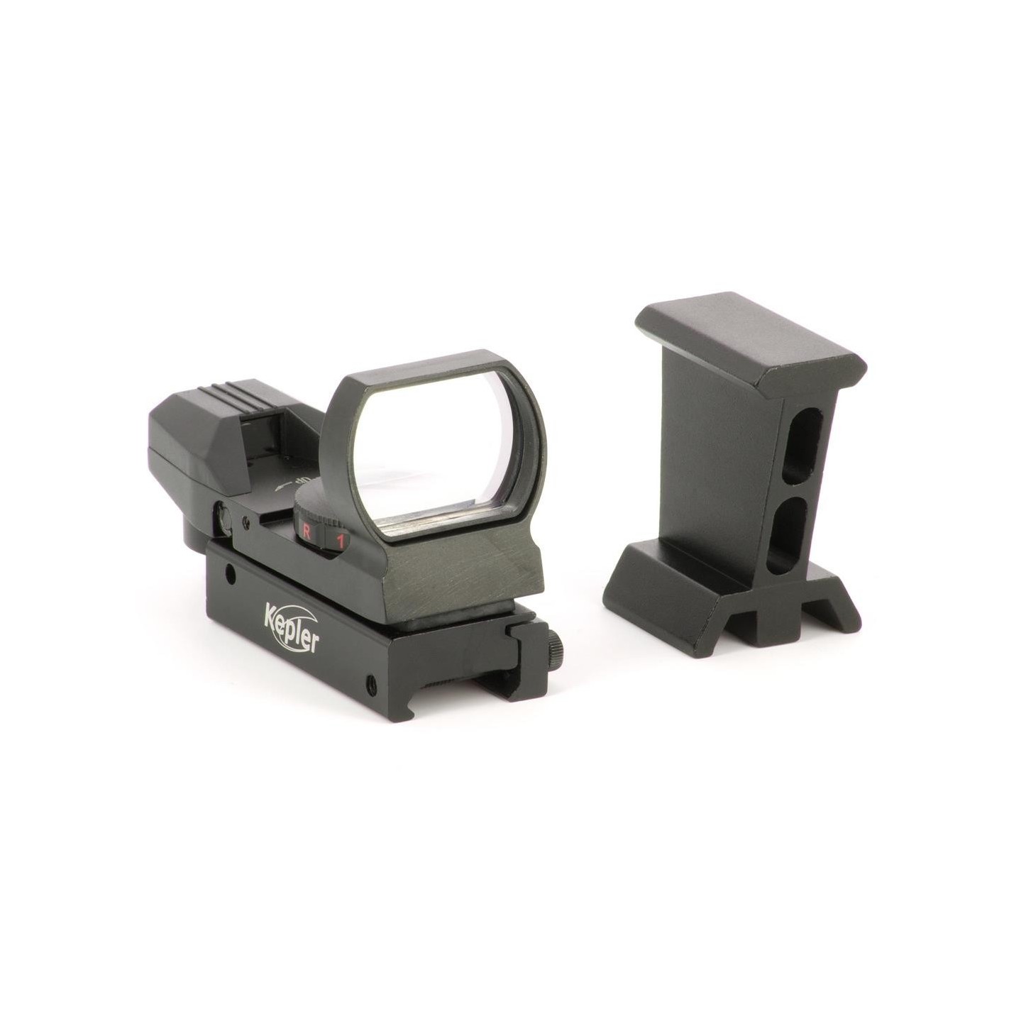 Buscador de punto rojo o verde, sin aumento ni inversión, con cuatro formas de retícula diferentes e intensidad variable.
