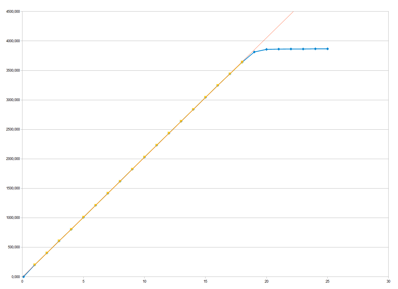 La PC anfitriona controla el tiempo de exposición prolongada y no hay un límite superior en el tiempo de exposición. En realidad, las exposiciones más largas están limitadas por la saturación del sensor, ya sea por la luz entrante o por la corriente oscura (consulte el siguiente subcapítulo).