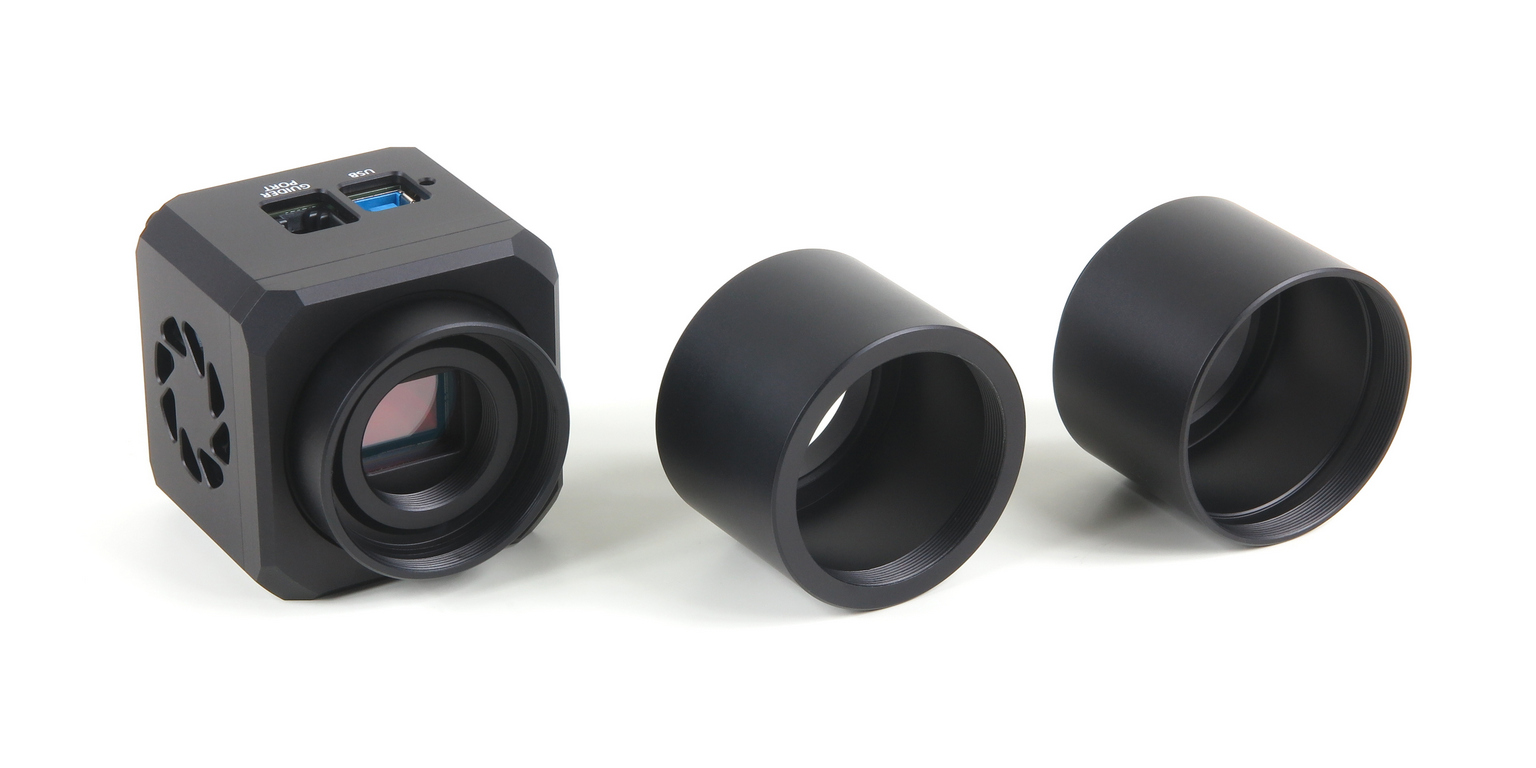 El adaptador de cilindro C a 1,25”, compatible con oculares estándar de 1,25”, está incluido en el paquete de la cámara. Por lo tanto, la cámara C1 se puede montar fácilmente en prácticamente todos los telescopios astronómicos en lugar de un ocular.