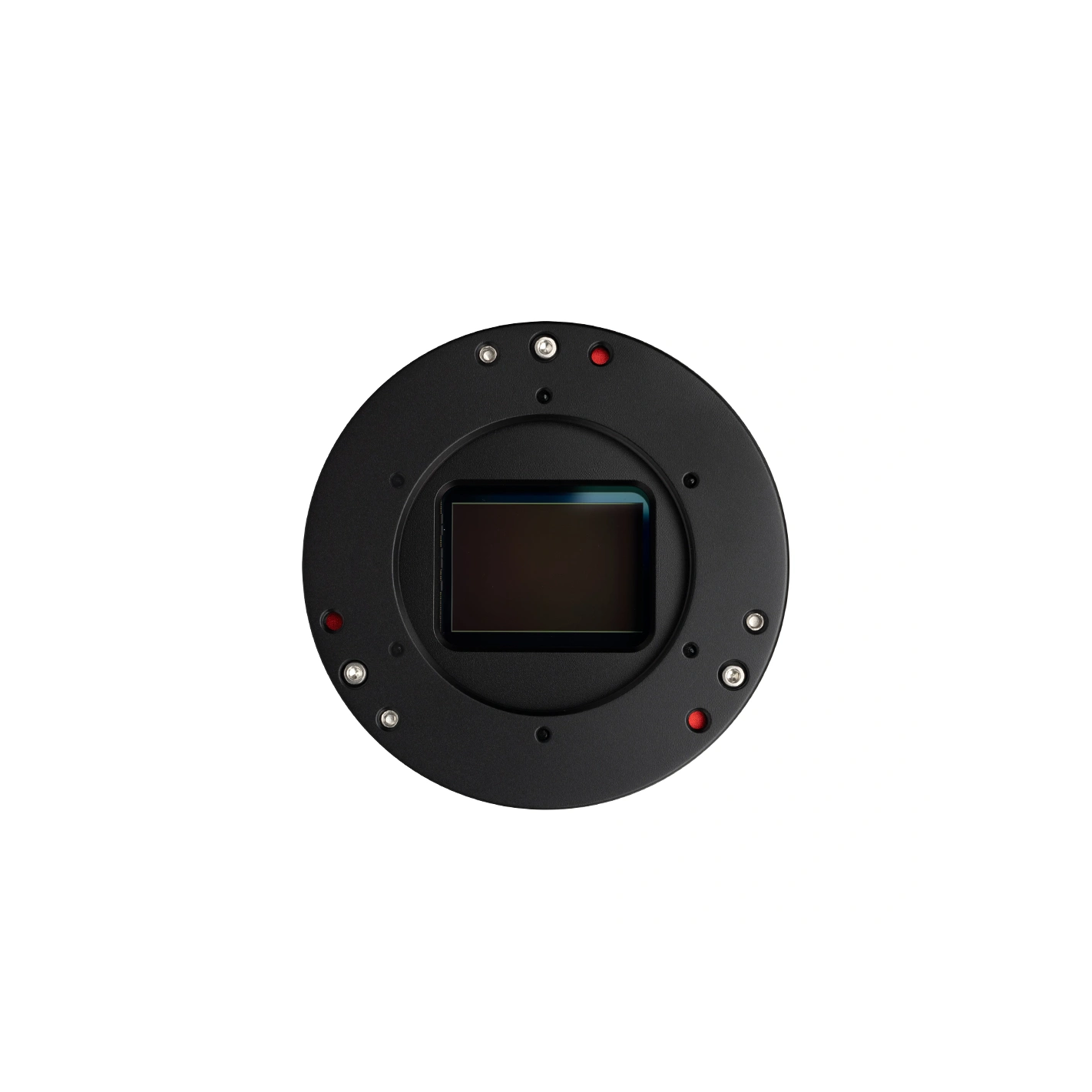 El ASI4400MC Pro incluye tres juegos de tornillos para ajustar la inclinación del sensor. Cada juego cuenta con un tornillo de empuje y otro de tracción que permiten ajustar con precisión la alineación del sensor con el eje óptico del telescopio. Este ajuste ayuda a corregir cualquier ligera inclinación que pueda hacer que las estrellas se vean alargadas o desenfocadas hacia los bordes del encuadre, garantizando un enfoque nítido y uniforme en toda la imagen.