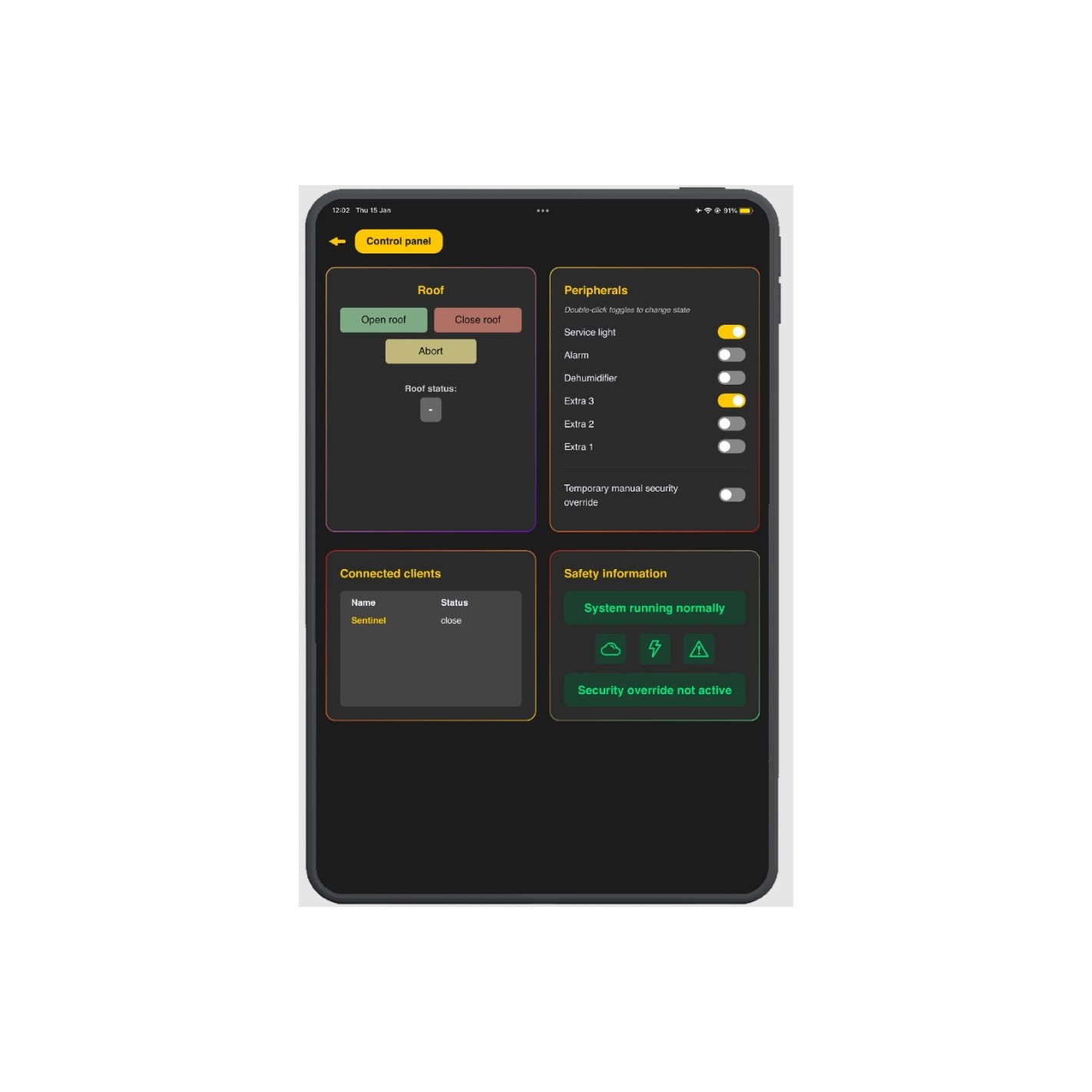 Los Clients pueden operar el tejado mediante software de terceros a través de ASCOM, desde el panel de control público o mediante la API.