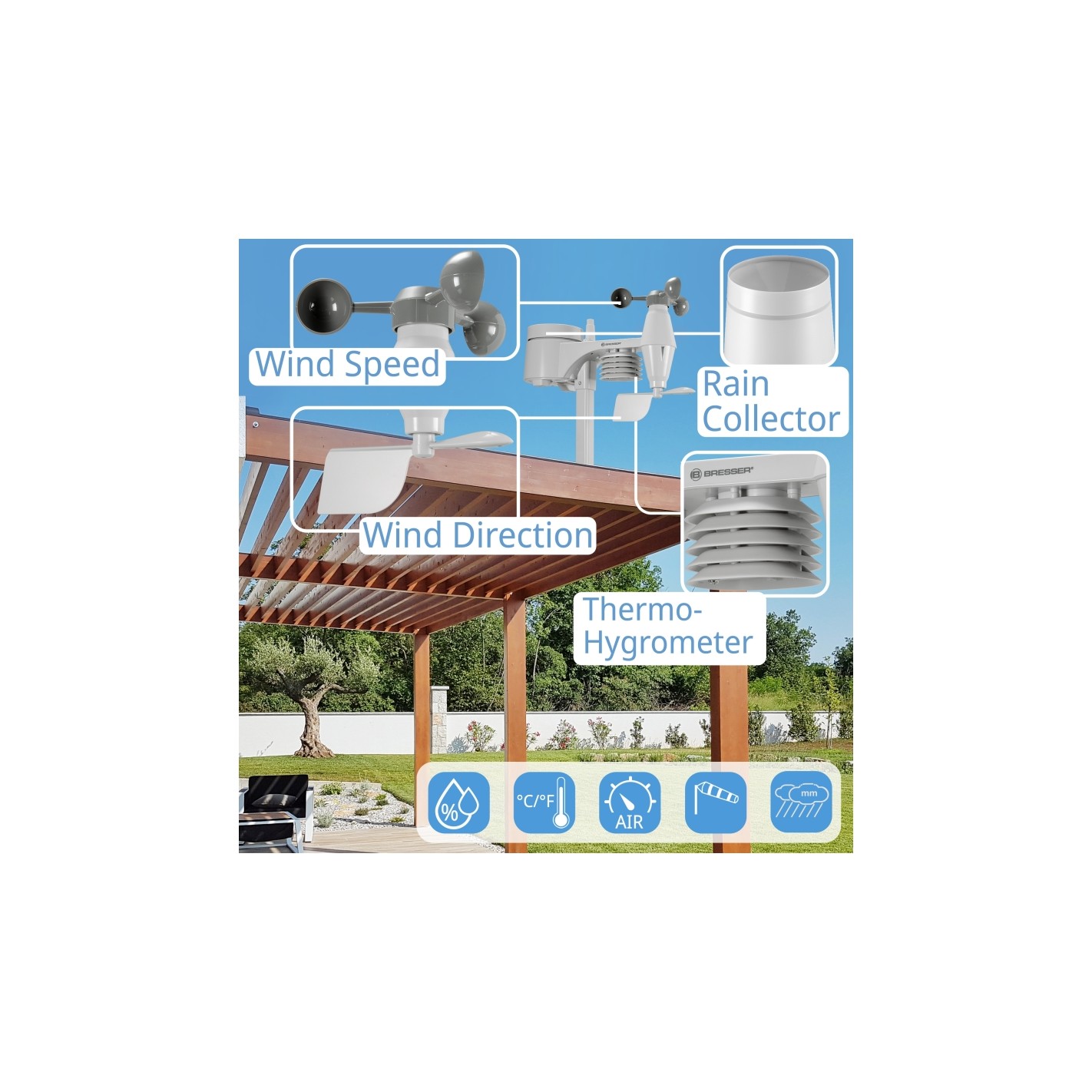 Las estaciones meteorológicas BRESSER son muy populares entre los aficionados a la meteorología, los apasionados de la jardinería y todos aquellos que no pueden o no quieren depender de los datos meteorológicos de estaciones de medición lejanas.
