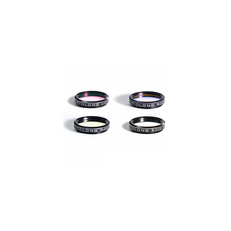 Set de filtros Optolong LRGB calibrados para astrofotografía con cámaras monocromas que después del posterior ensamblado de las imágenes individuales permite obtener el objeto con su color verdadero.