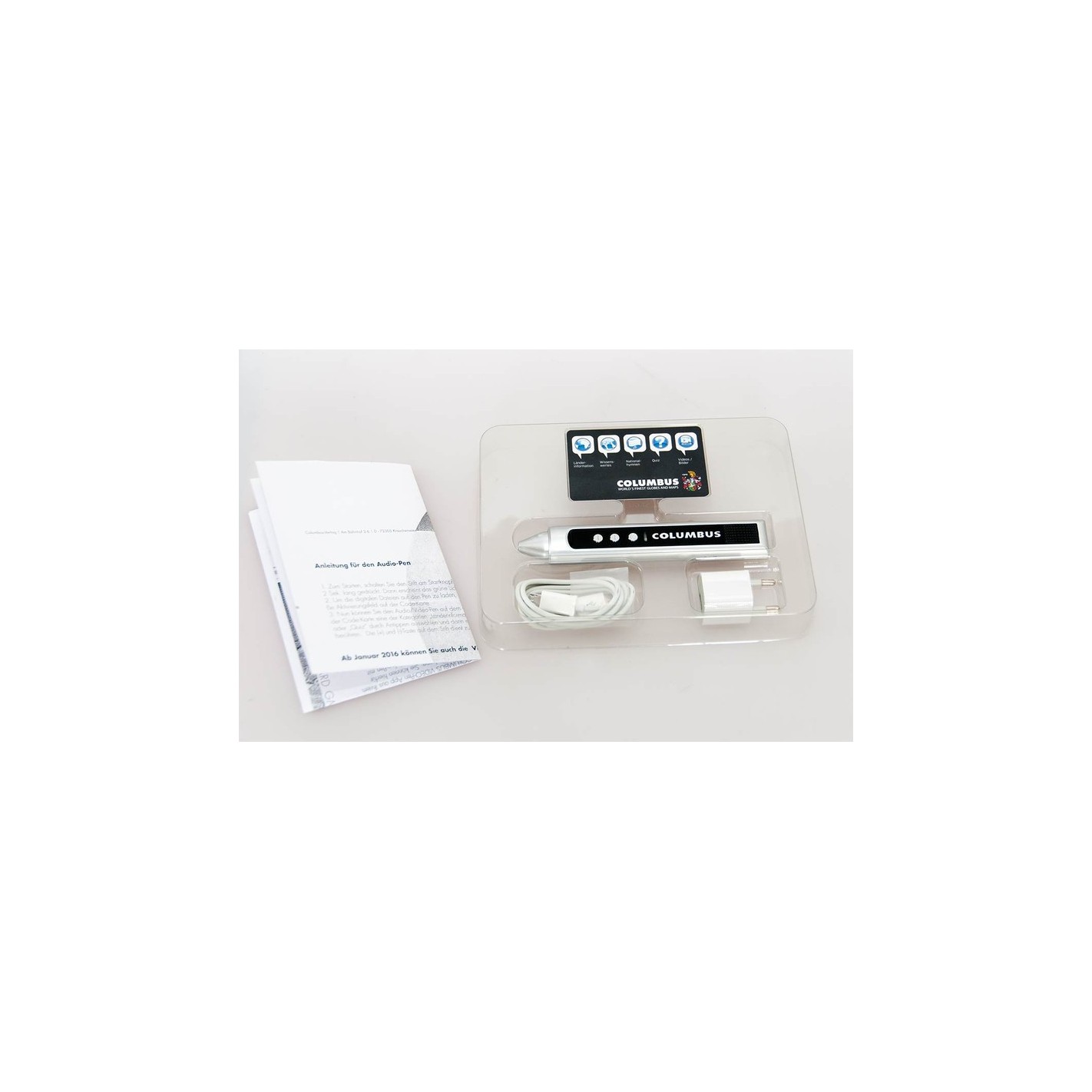 Columbus - el bolígrafo de audio y vídeo hecho a mano artesanalmente, también viene con un código bajo la superficie del mapa compatible que se puede leer con la punta del bolígrafo.