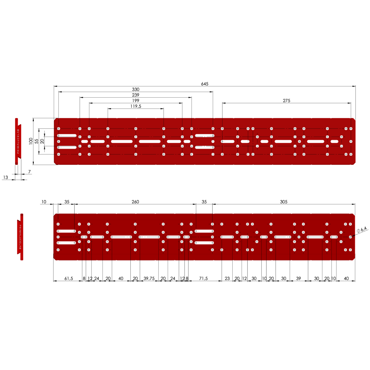 Compatible también con accesorios mecánicos de otras marcas gracias a sus ranuras y orificios centrales, esta placa ofrece la máxima versatilidad para crear un sistema de soporte robusto y totalmente personalizable.