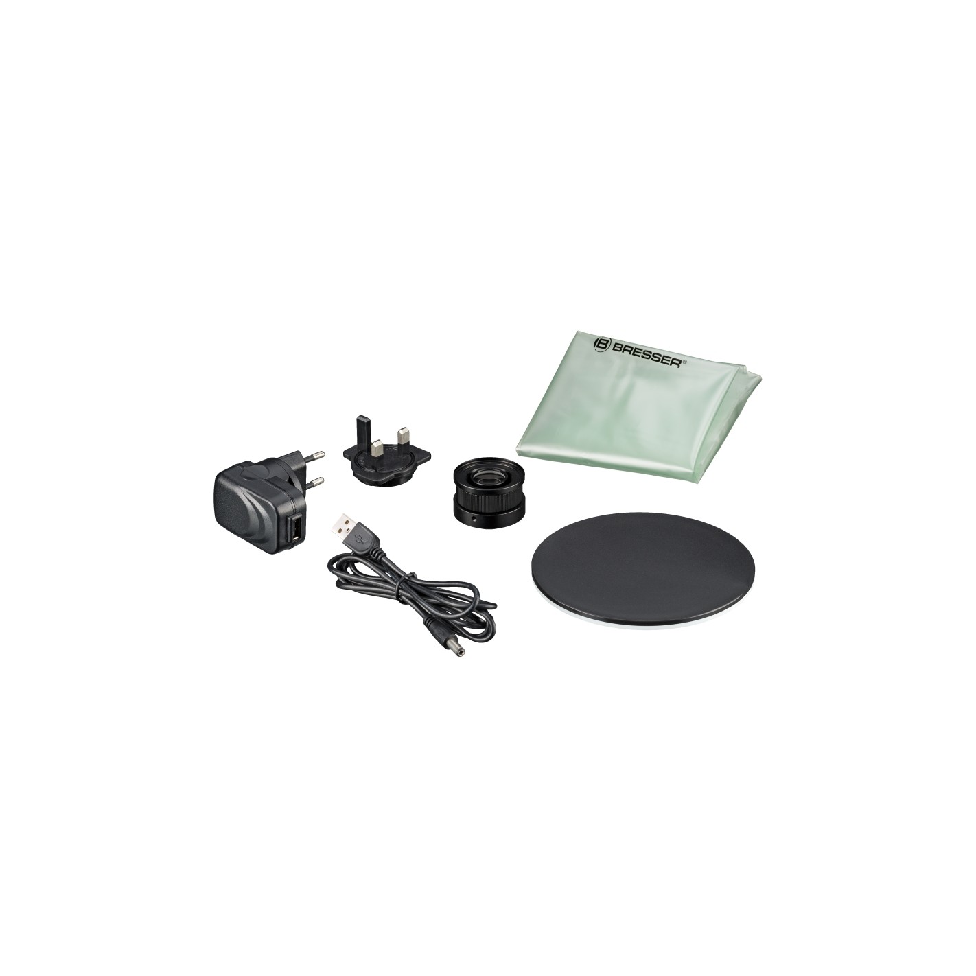 La distancia interpupilar y la compensación de dioptrías pueden ajustarse individualmente. El cabezal trinocular del microscopio es rotatorio (360°) y se entrega con dos tubos oculares inclinados de 45° y un tubo de cámara independiente para la conexión de una MikroCam de montaje en C.