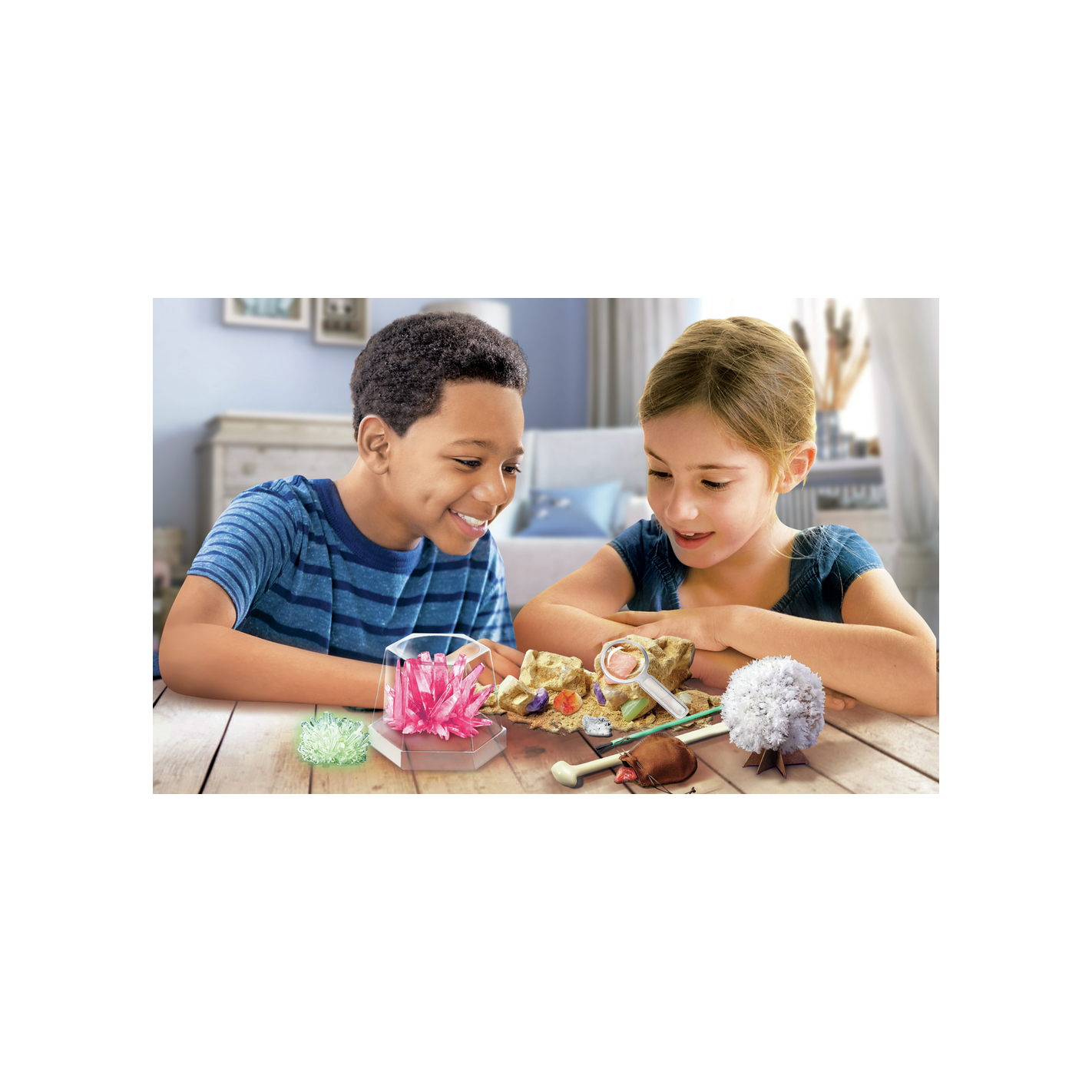 Aprende el poder natural de la Tierra y experimente la diversión ilimitada de la ciencia geológica. Crea un volcán, busca cristales minerales y haz crecer tus propias colecciones de cristales únicas. Un kit STEAM de geología que permite a niños y niñas explorar la Tierra de forma práctica: crear un volcán en erupción, excavar minerales y cultivar cristales únicos. Incluye herramientas para excavar, yeso, mezclas para cristales, lupas y más. Recomendado a partir de 10 años