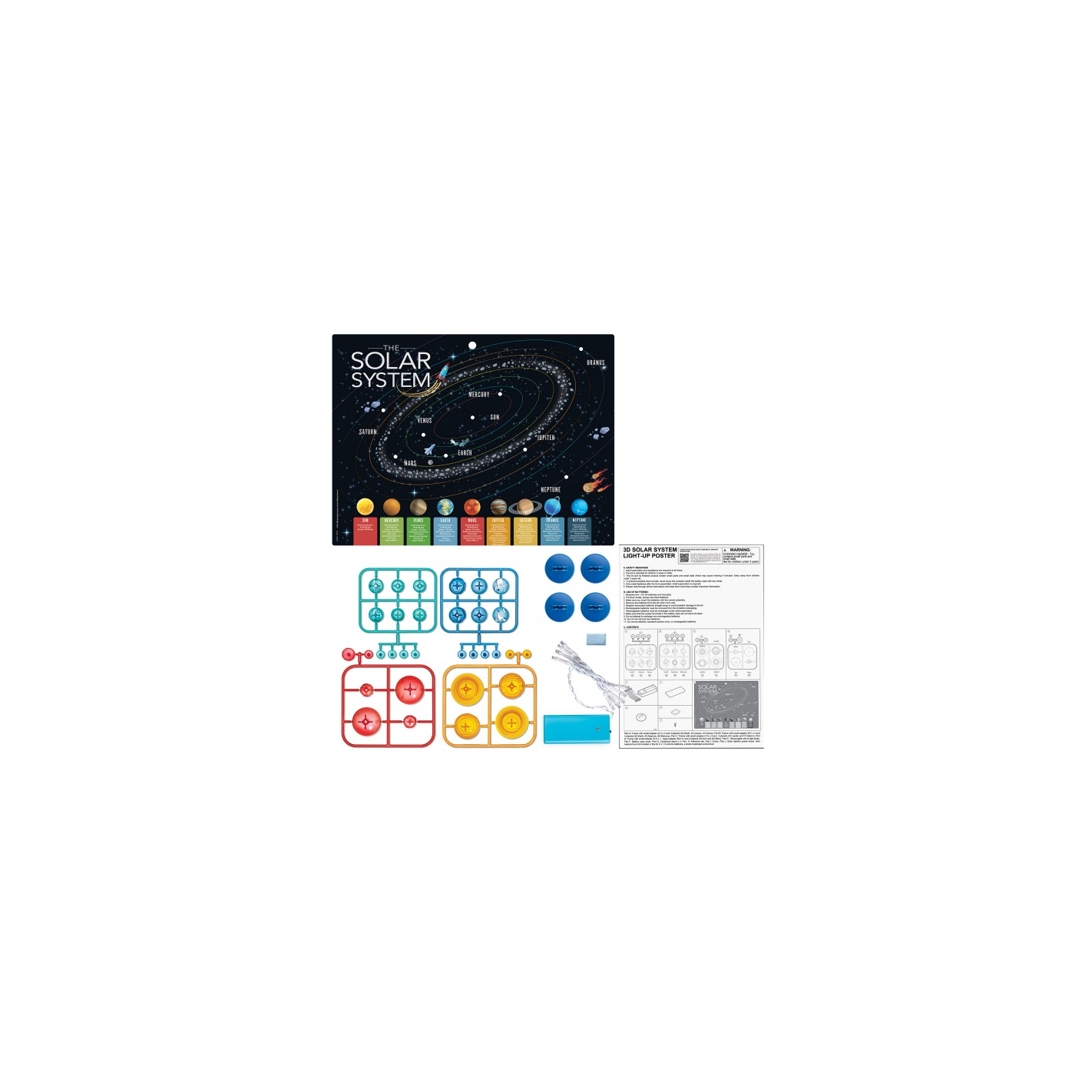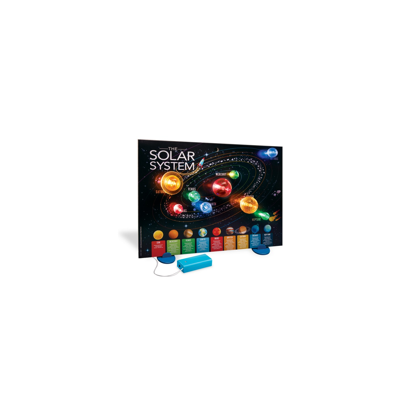 Construye un póster 3D del Sistema Solar con planetas iluminados: un kit educativo y decorativo de Kidz Labs con luces LED para explorar los planetas mientras decoras la habitación. Funciona con pilas y es ideal desde 8 años.