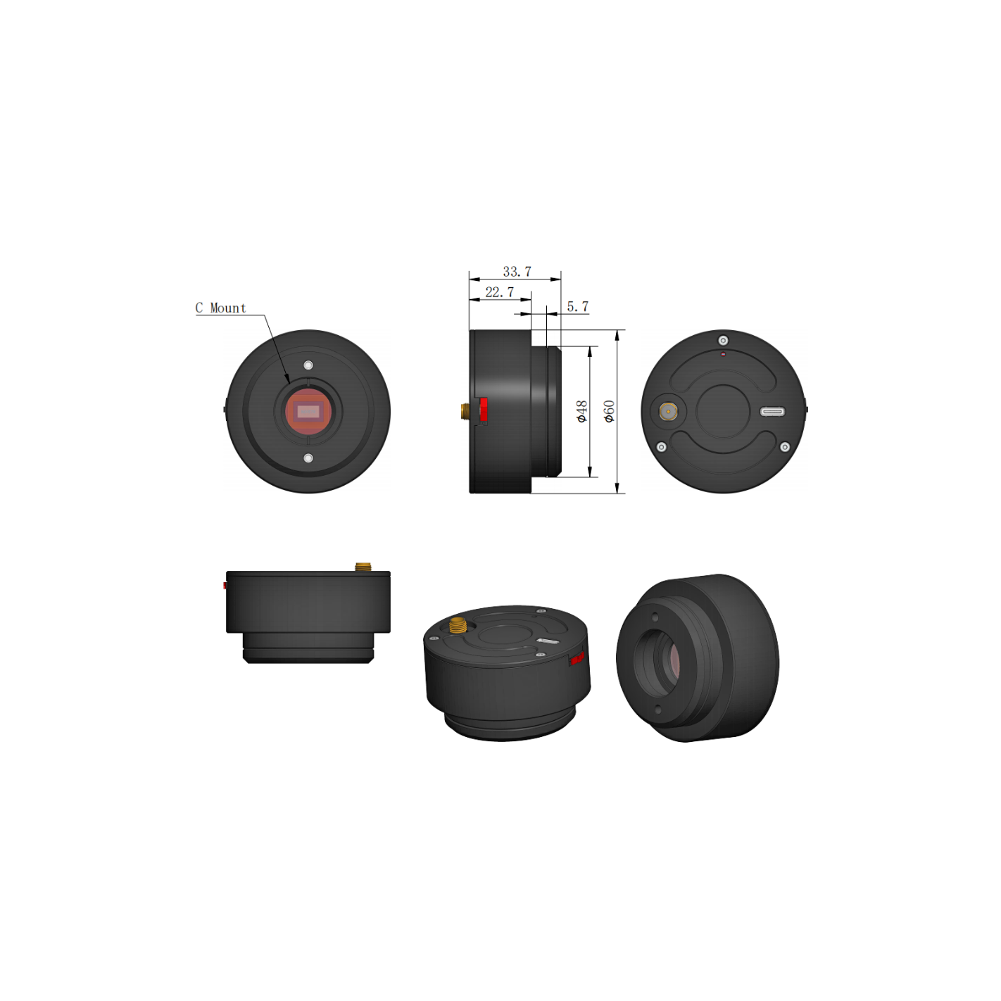 - Montaje: Montaje C, 25,4 mm (1 pulgada) de diámetro con 32 roscas por pulgada