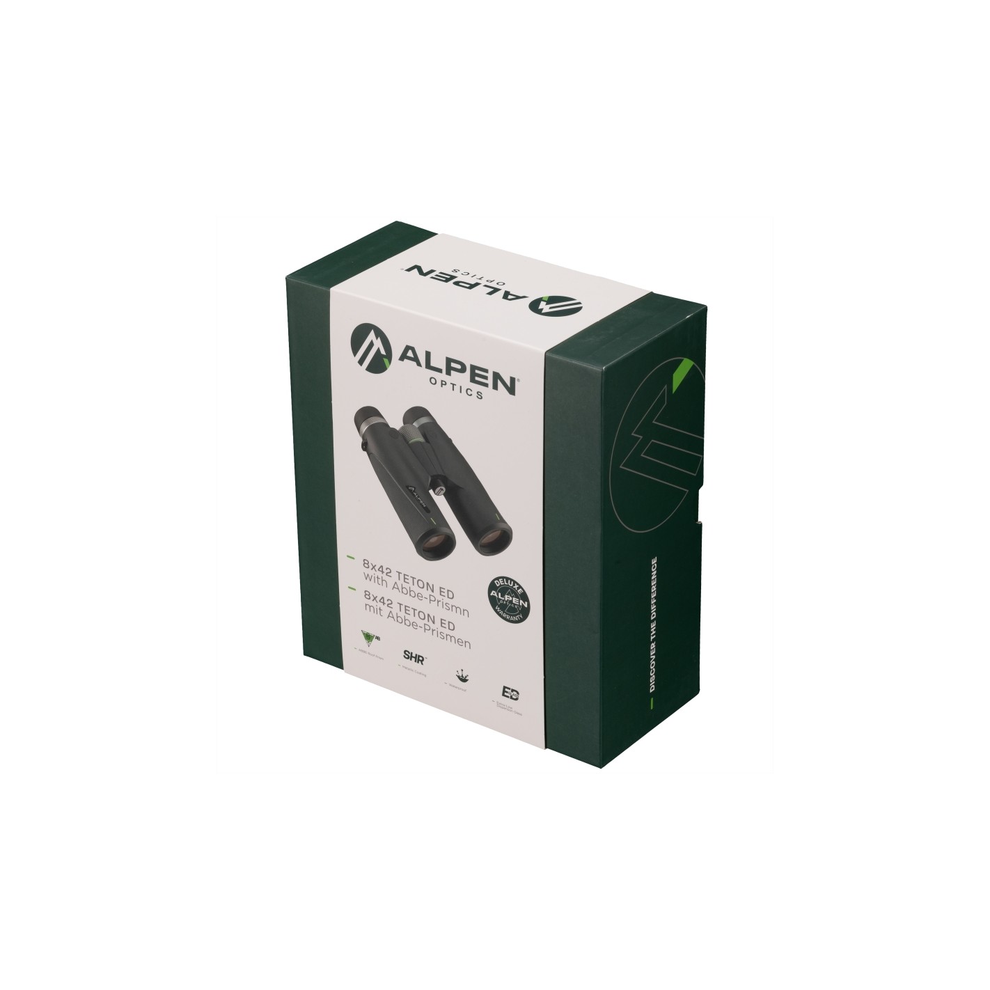 - Disfrute de imágenes brillantes, nítidas y de alta resolución con prismas de Abbe que llevan el recubrimiento SHR metálico exclusivo de ALPEN.