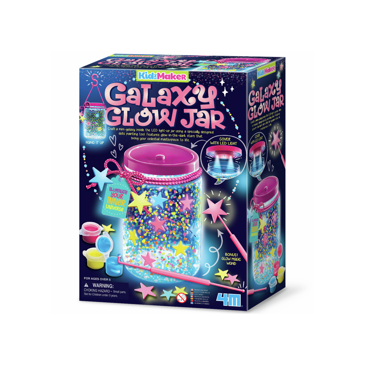 Transforma un simple frasco en un universo mágico con el KidzMaker / 4M Tarro de las Galaxias (ref. Y304804). Este set creativo invita a los niños a diseñar su propia galaxia luminosa, combinando manualidades con ciencia de la luz para crear una pieza decorativa única.