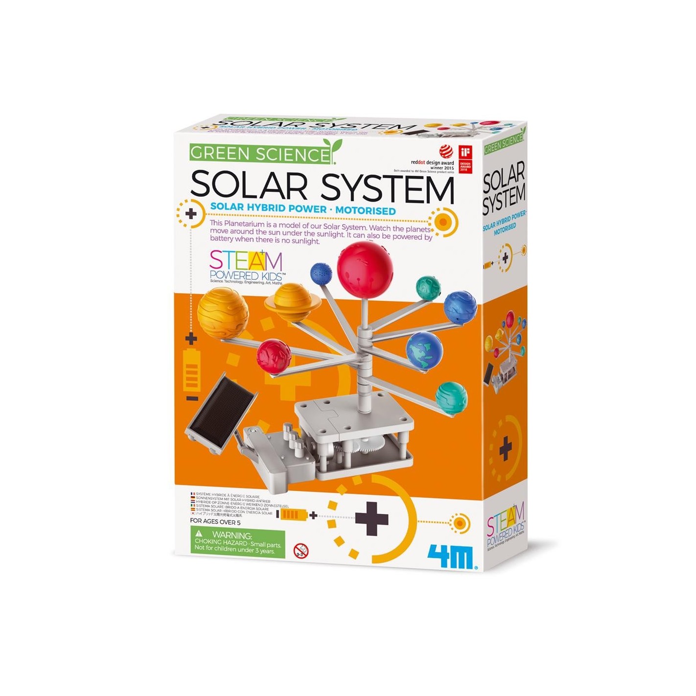 Sistema solar motorizado 4M. Este planetario es una fantástica maqueta del Sistema Solar. Los peques podrán observar como los planetas giran alrededor del Sol gracias a la propia energía solar que permite su funcionamiento. También puede funcionar con una pila.