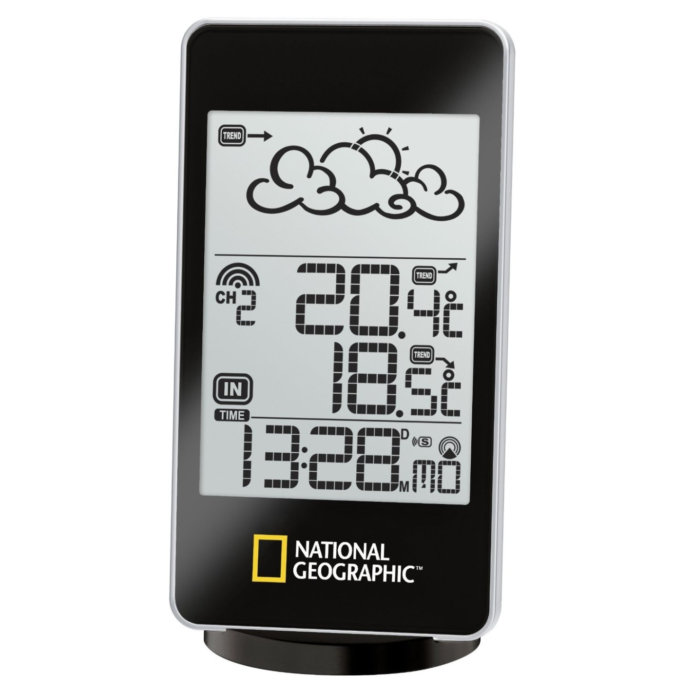 Esta estación meteorológica National Geographic Basic presenta un moderno diseño y una pantalla con la información perfectamente organizada para facilitar su lectura y comprensión pese al reducido tamaño de la estación meteorológica. La pantalla de la estación meteorológica muestra la previsión meteorológica (tendencia para las siguientes horas) y la temperatura interior y exterior. La hora y la fecha están radiocontroladas. Dispone de 3 funciones de alarma distintas e incluye el sensor de temperatura y humedad exterior.