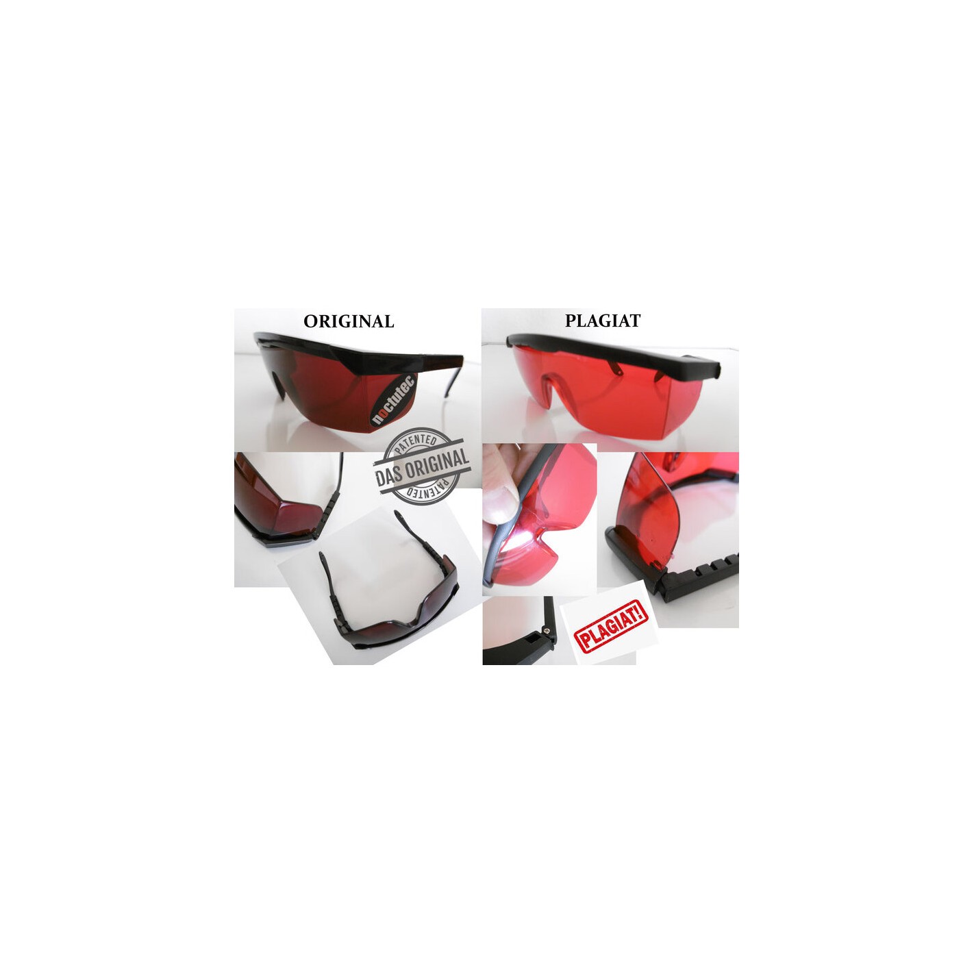 ¡Se acabó el deslumbramiento! Las gafas están diseñadas de tal manera que no entra luz ni por delante ni por los lados. Las patillas de las gafas se pueden ajustar en longitud. Puede llevar las gafas durante toda la noche de observación. Solo tiene que subir las gafas para mirar por el telescopio. Más fácil, imposible.