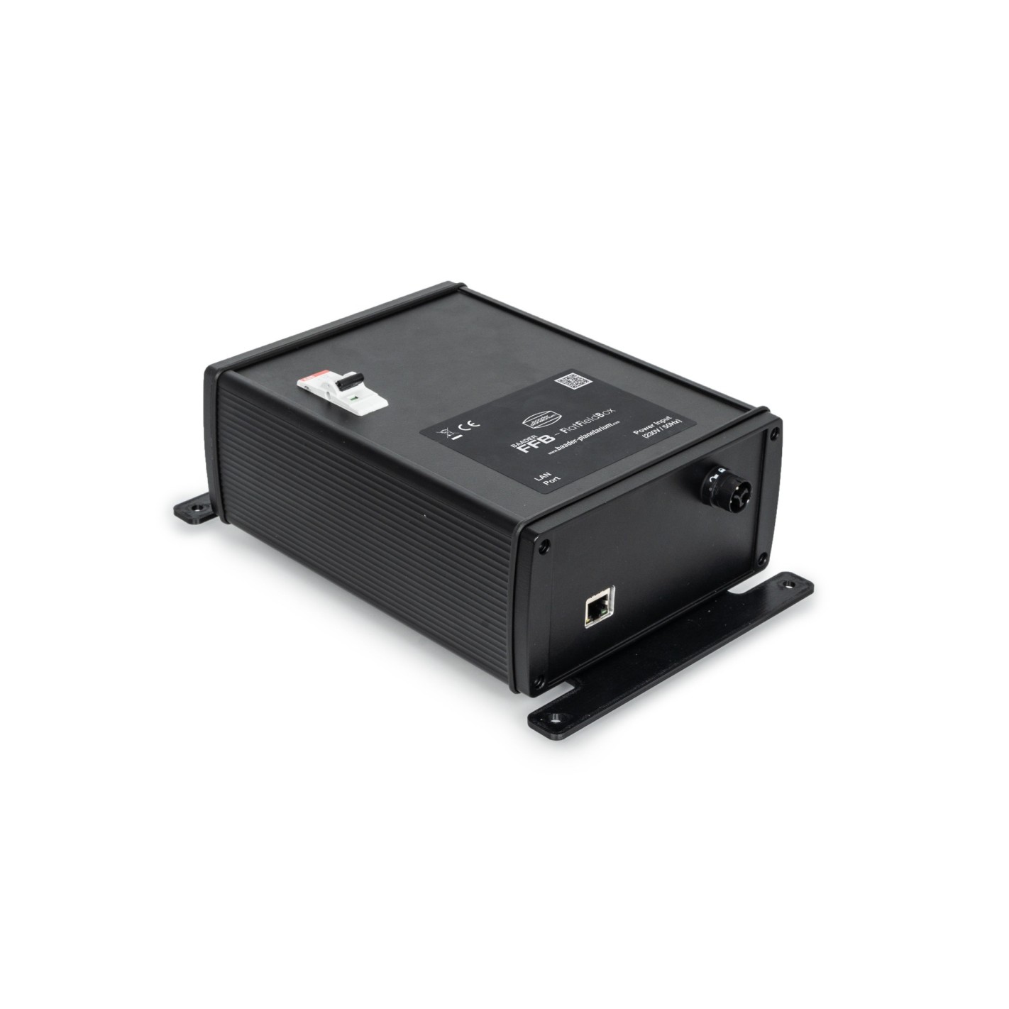La unidad de control (FlatPowerBox) está montada en el lateral del FlatFieldBox. La placa reguladora de alta calidad controla el brillo de los canales de color individuales. A través de la interfaz web integrada, puedes operar y configurar todas las funciones de FFB, y grabar tus Flats de manera rápida y eficiente con hasta ocho preajustes. La fuente de alimentación LED proporciona 12V, y la línea de entrada está protegida por un interruptor automático en caso de mal funcionamiento.