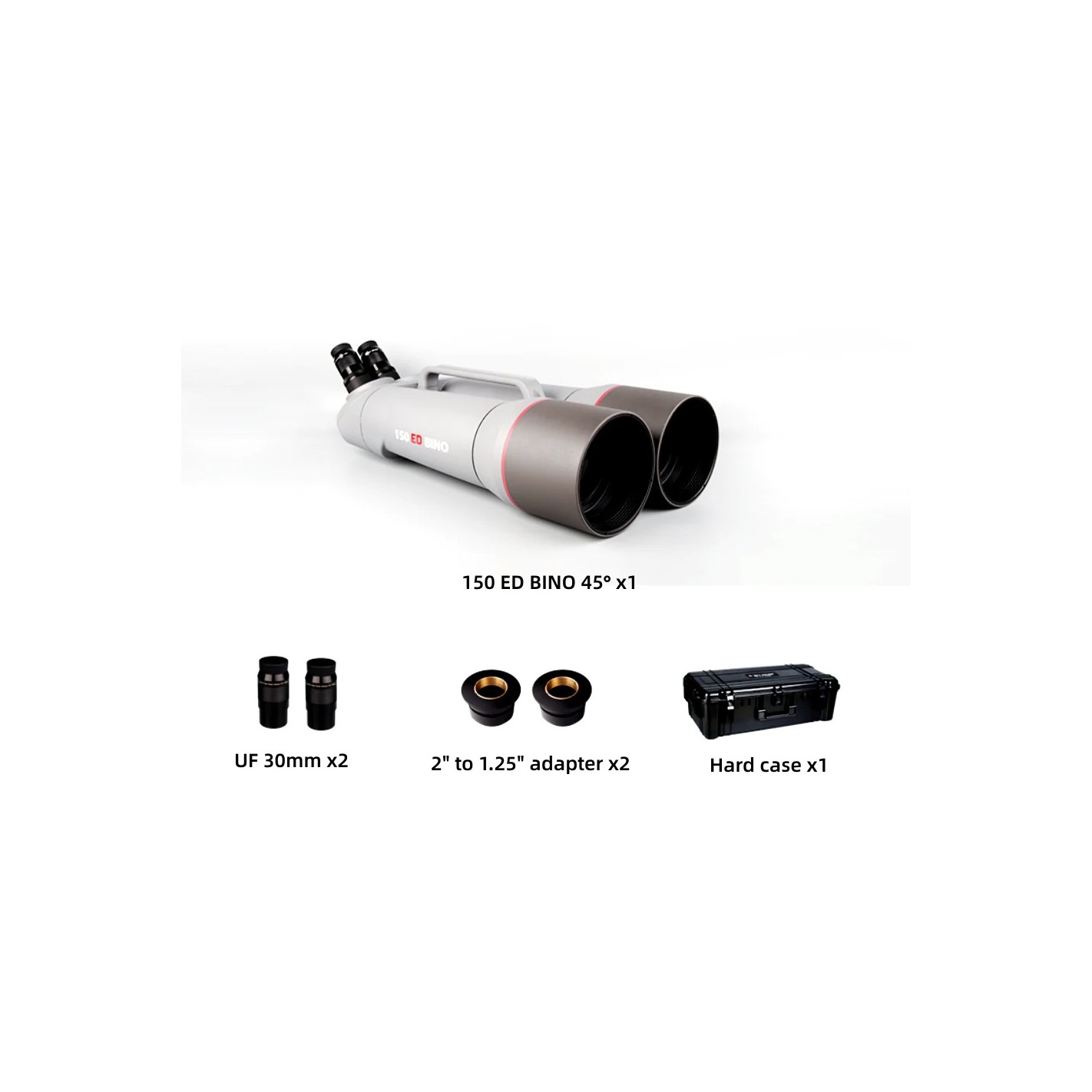 Los SKY ROVER 150ED BINO son los binoculares más grandes de la serie gigante, con un diámetro extragrande de 150 mm y una distancia focal de 840 mm. Gracias a su diámetro extragrande, el área de transmisión de luz aumenta, el objeto observado es más brillante y los detalles más nítidos.