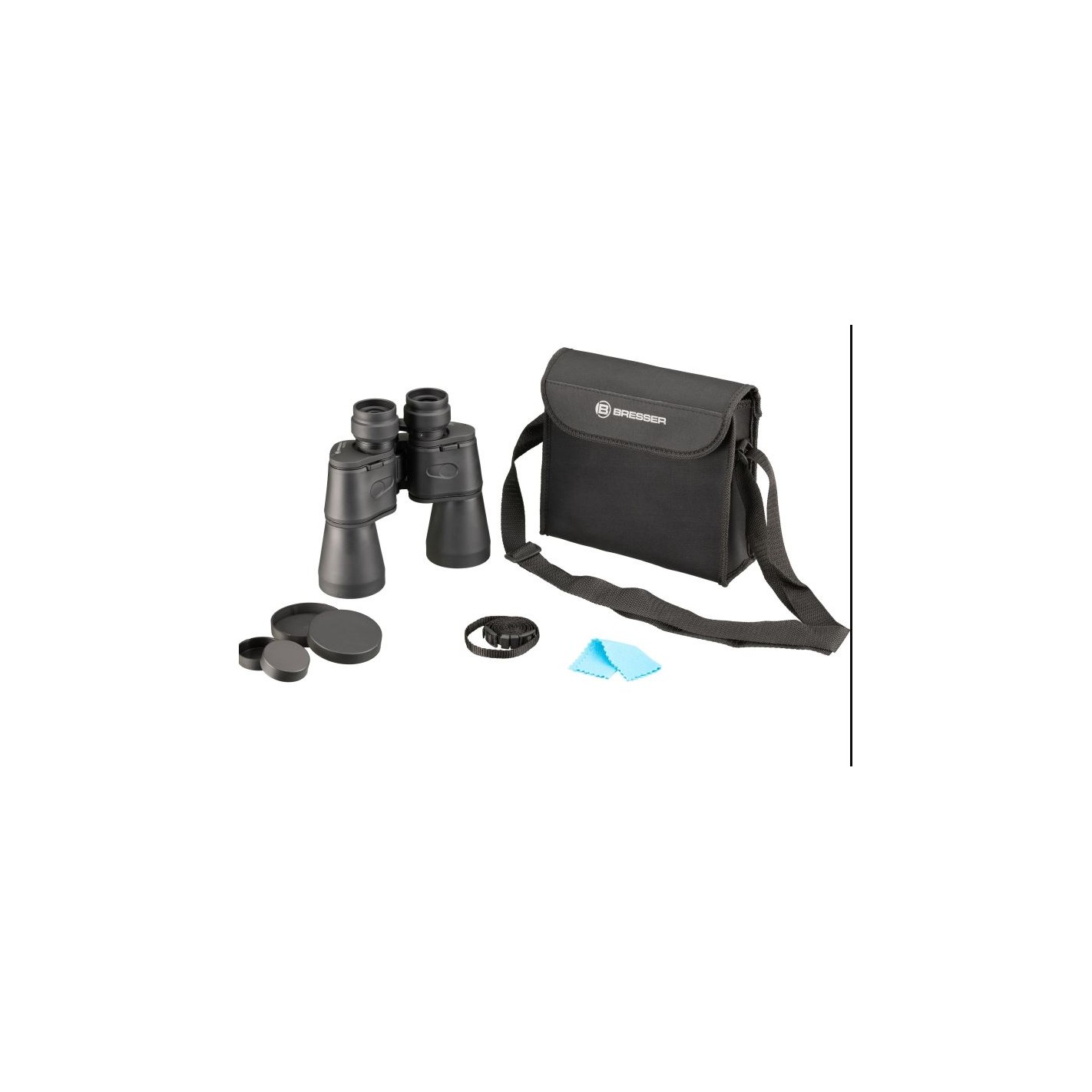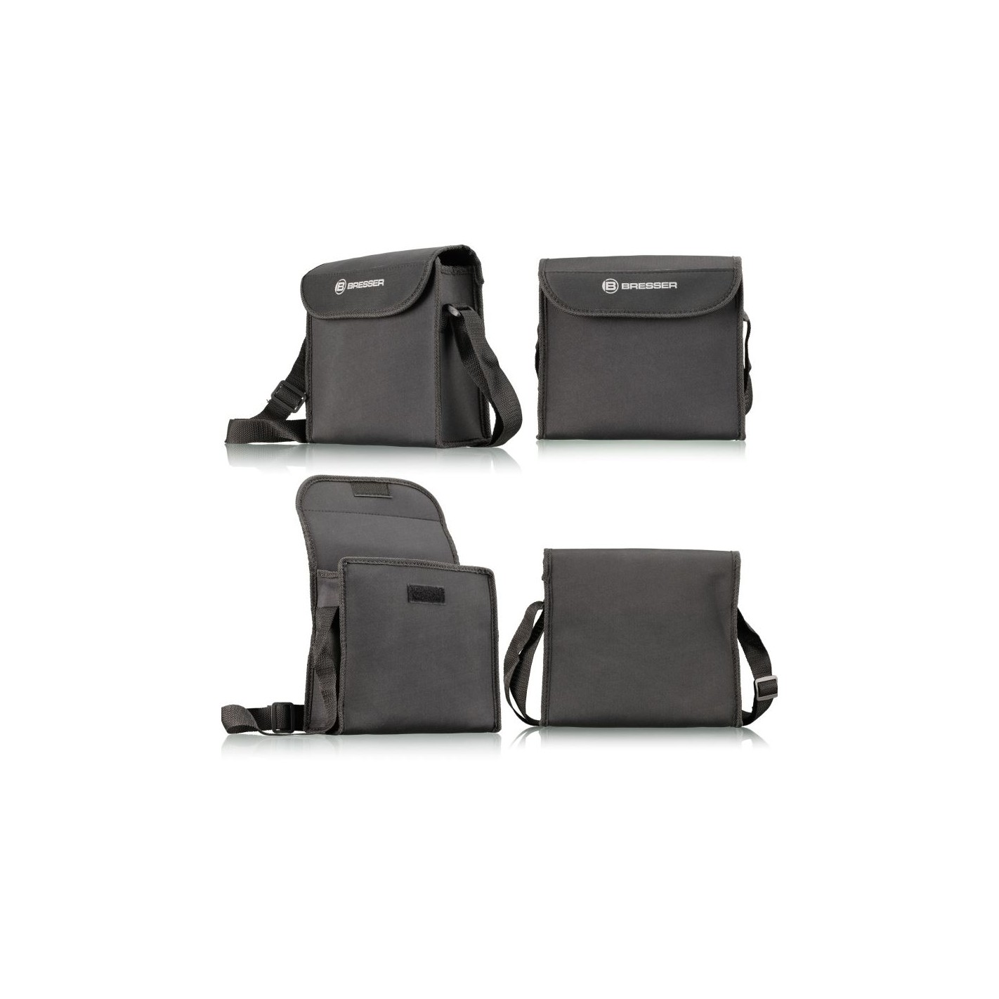 La proporción conveniente entre apertura del objetivo y aumento permite la observación durante el crepúsculo. Los prismáticos son dotados de un ajuste de dioptrías y ojeras de goma plegables para personas que llevan gafas. Los prismáticos BRESSER Hunter 10x50 tienen un revestimiento antideslizante y una conexión para trípodes.