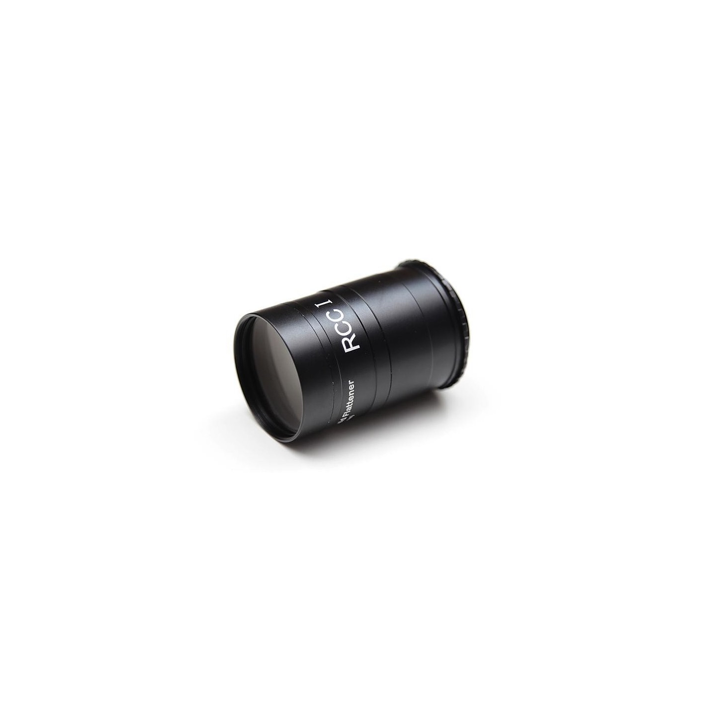 El diseño de tres lentes del corrector de coma RCC 1 (Rowe) para telescopios tipo Newton incrementa la distancia de trabajo hasta 91,5 milímetros, lo que permite interponer guías fuera de eje, ópticas adaptativas o ruedas portafiltros sin que por ello se vea afectado el rendimiento óptico del sistema. El revestimiento óptico en ambas caras de todas sus lentes entrega la máxima transmisión de luz posible con imágenes libres de reflejos o halos. Válido para telescopios Newton con relaciones focales entre F/3,5 y F/6. A diferencia de otros sistemas correctores el RCC de Baader Planetarium no modifica la focal, trabaja a un factor real de 1.1 y no oscurece la imagen ni reduce el campo. Además, el RCC 1 solo extiende el punto focal ligeramente (unos 5 milímetros aproximadamente para sistemas a F/4). Peso del corrector: 142 gramos.