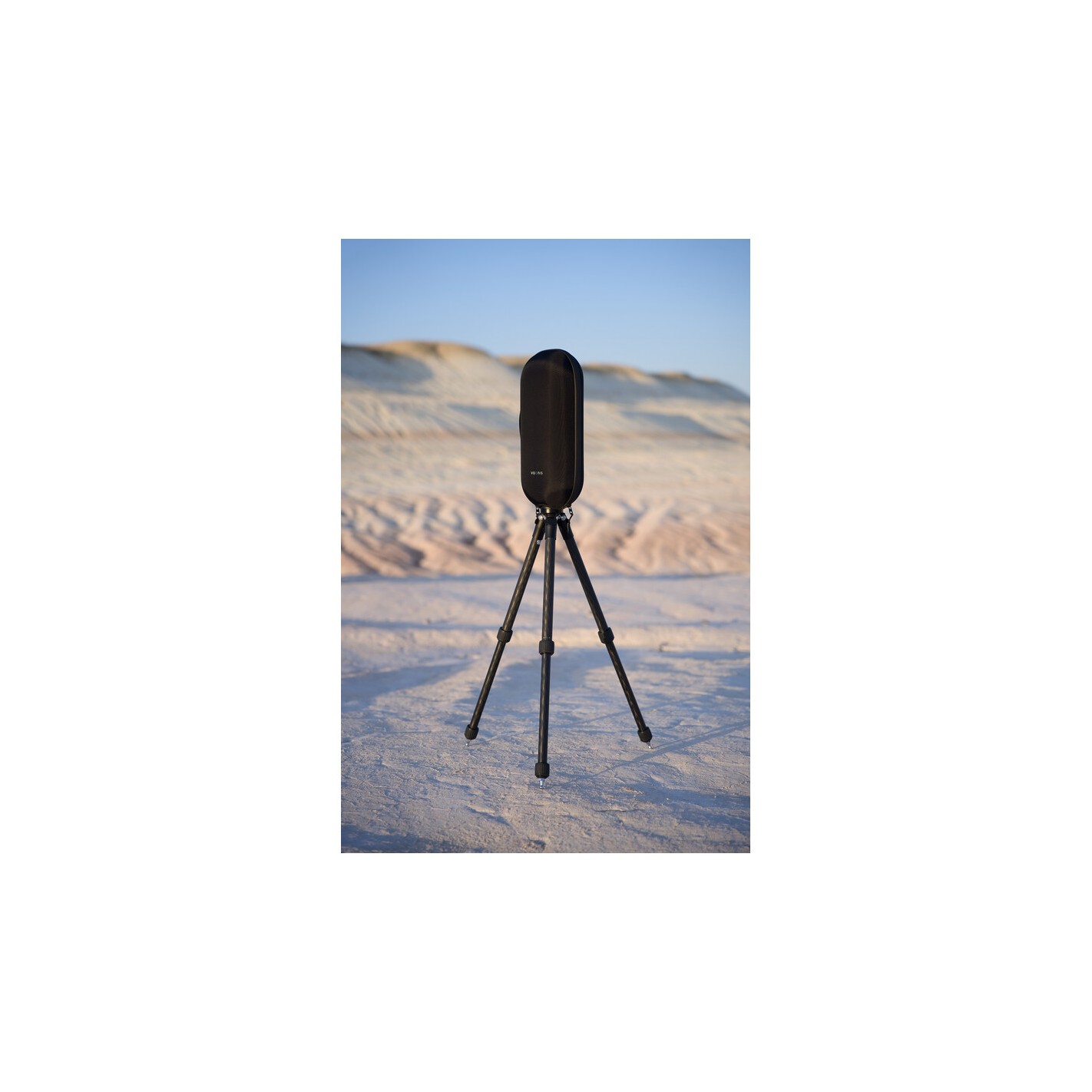 - Trípode de fibra de carbono: ligero pero extremadamente estable.