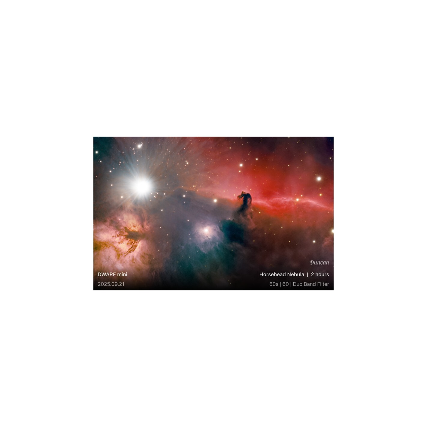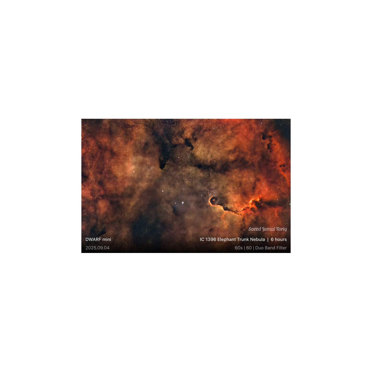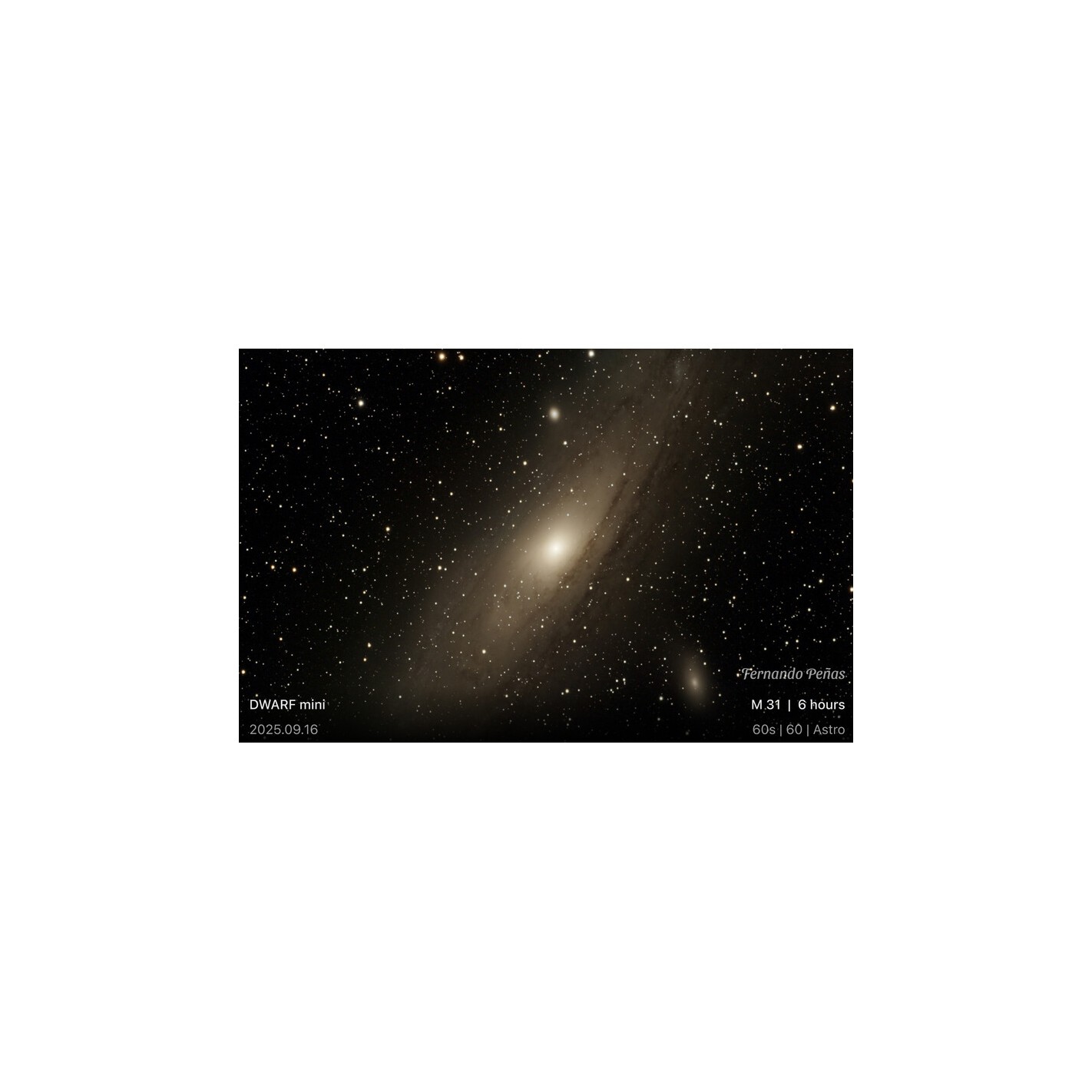 En cuestión de minutos, el DWARF Mini se calibra automáticamente, localiza los objetos seleccionados y los mantiene perfectamente centrados y enfocados. Permite capturar con facilidad cráteres lunares, galaxias, nebulosas y cúmulos estelares, así como imágenes de gran campo de la Vía Láctea gracias a su sistema de doble cámara integrada.
