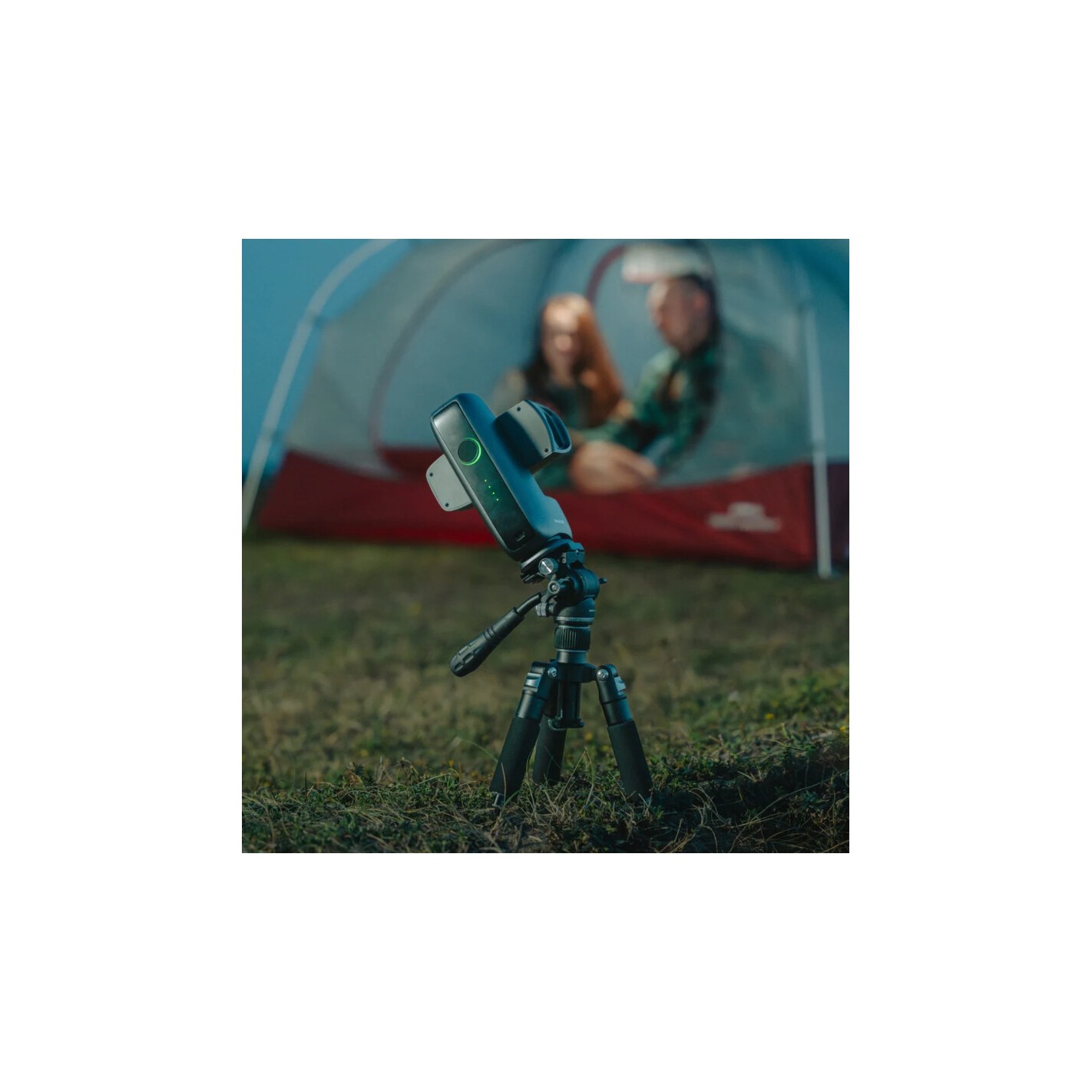 Telescopio inteligente portátil con doble sistema óptico integrado, que combina un teleobjetivo de 150 mm para observación y astrofotografía de cielo profundo, y un objetivo gran angular de 6,7 mm para campos amplios y alineación automática. Incorpora modo ecuatorial (EQ) con exposiciones de hasta 90 segundos, 64 GB de memoria interna y un diseño ultraligero de solo 840 g, ideal para astronomía móvil y viajes. Se entrega sin trípode.