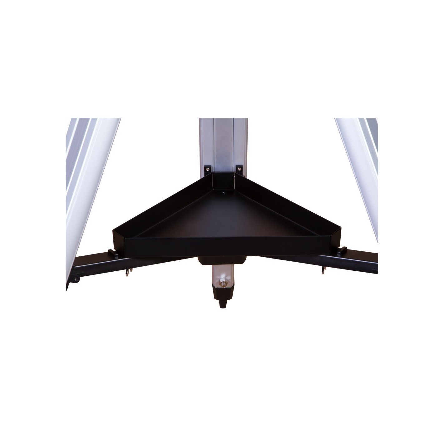 Puede manejar el tubo óptico con la ayuda de una montura ecuatorial. Es un poco más complicada que una montura azimutal, pero permite hacer un seguimiento de los objetos celestes de forma precisa y sin esfuerzo. El aprendizaje de su manejo requiere algo más de tiempo, pero la calidad y comodidad de las observaciones no le defraudarán. La montura se fija a un trípode de aluminio de altura regulable, que se puede ajustar fácilmente a la altura del observador. En el trípode se puede instalar fácilmente una bandeja para accesorios.
