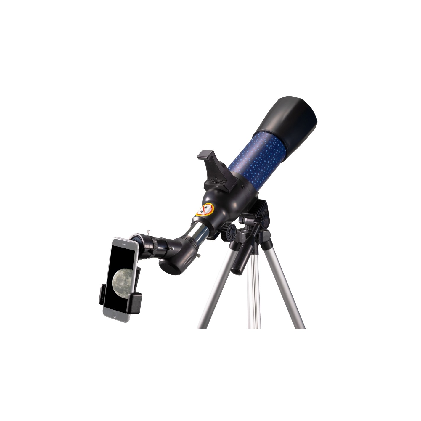 Gracias a los 3 oculares diferentes con 20x, 50x y 100x aumentos, podrás alcanzar literalmente las estrellas. Si eso no es suficiente, puede utilizar la lente de Barlow para triplicar cada nivel de aumento. El set también viene con un gran accesorio para iniciarte en el mundo de la astrofotografía : Con el adaptador de ocular para smartphone, podrás hacer impresionantes fotos de la luna, los planetas y otros objetos celestes y compartir tus descubrimientos del cielo nocturno con tus padres, hermanos o amigos.