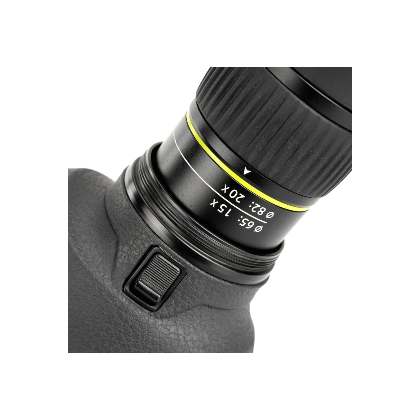 El catalejo Endeavor HD 82A incluye un ocular con zoom de 20-60x y un dial de zoom de goma. Una relación de zoom de 1:3 y un ángulo de visión de 2,1-1,0° complementan el largo relieve ocular de 19 mm y el ocular de goma, que ayudan a proporcionar una comodidad de visión adicional para las observaciones de larga duración.