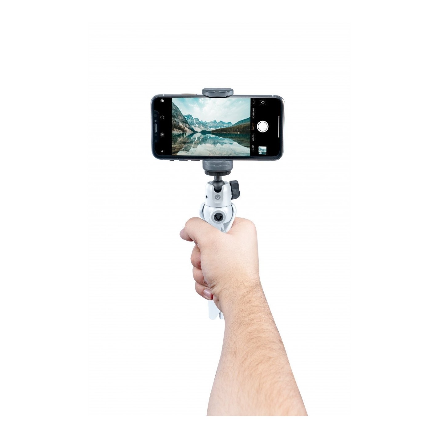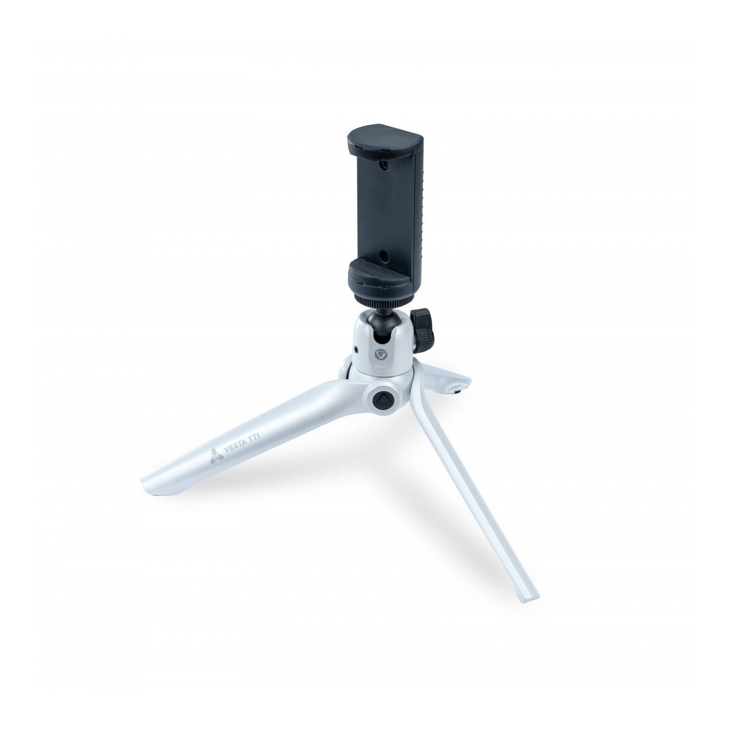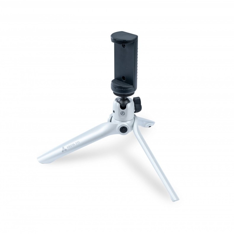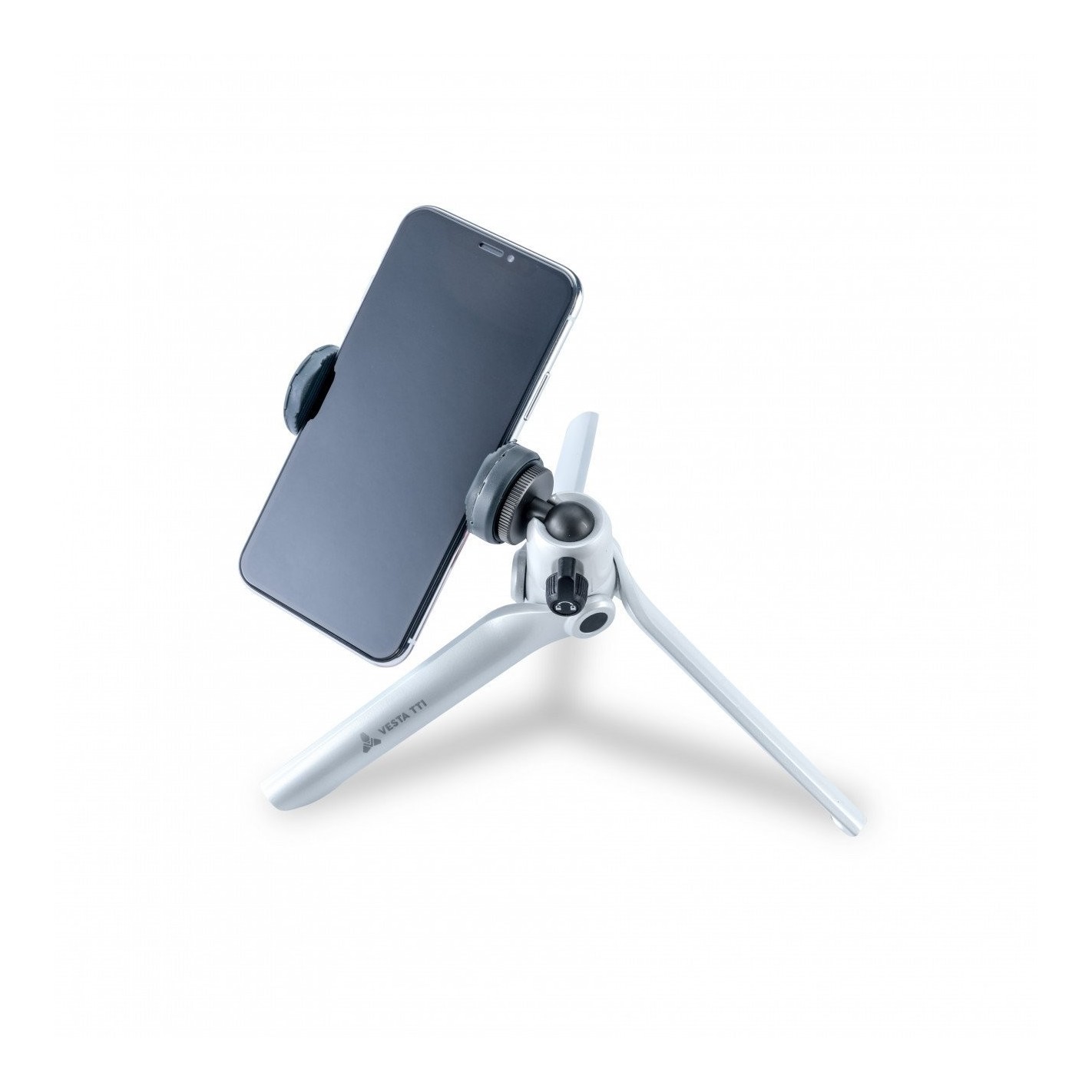 El kit del trípode de mesa VESTA TT1 color White Pearl (Blanco Perla), que incluye el elegante adaptador de smartphone para trípode, es estable, ergonómico y de tamaño compacto, capaz de sostener smartphones, ópticas deportivas y cámaras de hasta 2kg.